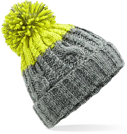 Štítek TearAway pro snadnou změnu značky, vysoce kvalitní pletený design z více přízí, dvoubarevný design, luxusní bambule, luxusní termální páska Shearling pro extra teplo, manžetový design pro optimální dekoraci
