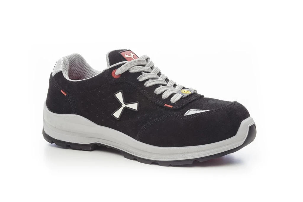 Nízká bezpečnostní obuv dámská, povrch vyroben z voděodolné a prodyšné perforované štípenky, z vnitřní strany se po celém povrchu nachází prodyšná podšívka. Odolnost proti oděru, 1+1 nekovová očka a 6+6 vyztužených šněrovacích dírek, reflexní vložky v chrániči podpatku a na vnější straně špičky, hliníková tužinka ve špičce litá pod tlakem, vyjímatelná ortopedická vložka Ortholite X40 016 ESD, certifikovaná stélka z textilní fólie proti propíchnutí, proti torzní výztuž shank, výztuž pod špičkou ve tvaru koňské podkovy, mezipodešev z ultralehkého polyuretanu ESD, tlumič nárazů MASTER BALANCE z polyetheru PU o vysoké houževnatosti a vyvážené hustotě, podrážka XTRAIL GRIP z TPU ESD s chráničem podpatku a chráničem špičky