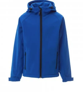 Dětská / chlapecká pohodlná bunda s raglánovými rukávy, tvarovaná kapuce se dvěma švy a stahovací šňůrkou, dlouhý podlepený zip, nastavitelné manžety se zapínáním na suchý zip, dvě vnější kapsy na zip