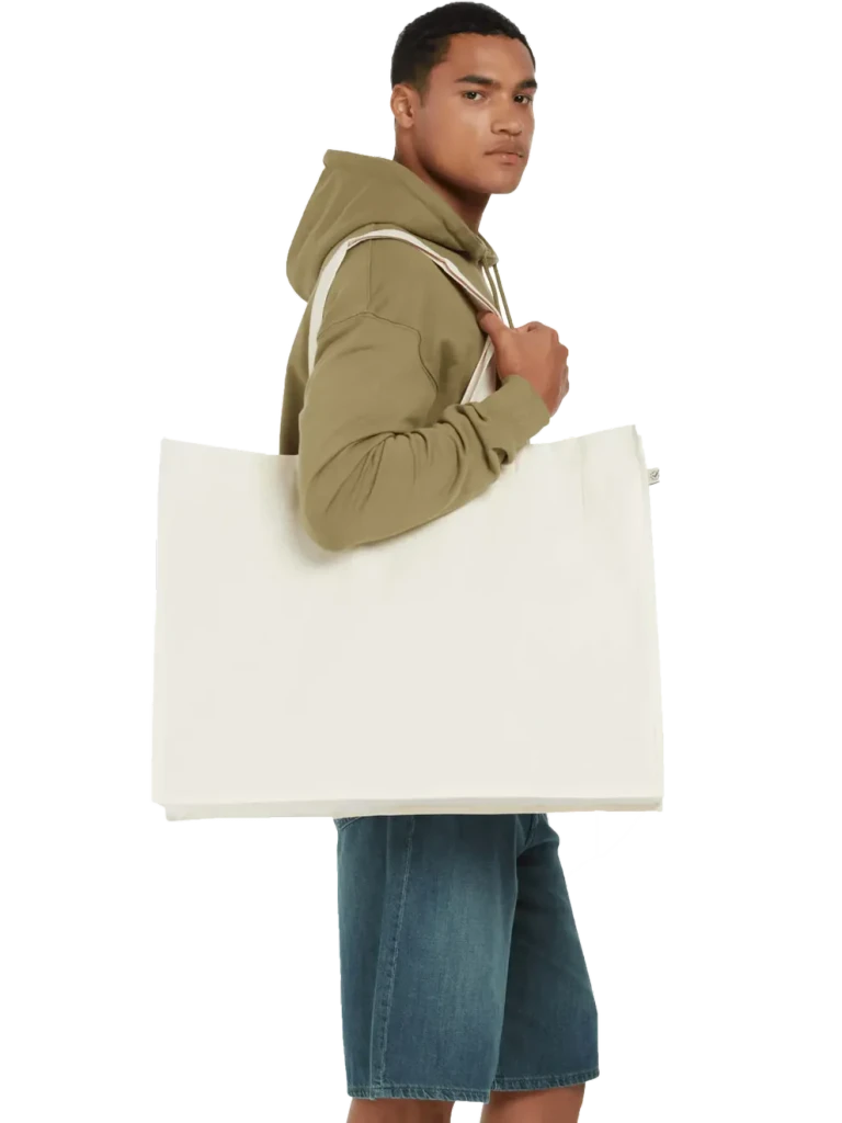 EP82-NLTaška EP82 Jumbo Tote, určená pro větší náklady, nabízí maximální objem v elegantním, naddimenzovaném provedení – ideální na trhy, akce a balíčky zboží. Díky velkorysým rozměrům a zároveň elegantnímu designu představuje praktické řešení pro přepravu velkého množství věcí.