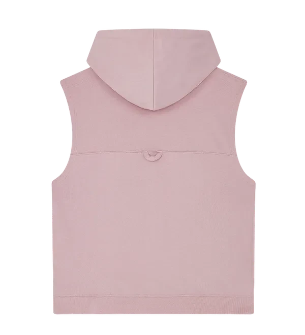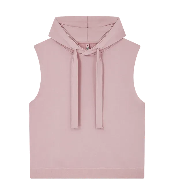 Tkanina je vyrobena ze 100% organické bavlny a má jemnou semišovou texturu, která zajišťuje prvotřídní pocit na dotek a každodenní pohodlí. Mezi designové detaily patří moderní bezrukávový střih, praktická boční kapsa a výrazná stahovací šňůrka, která dodává modelu výrazný vzhled.