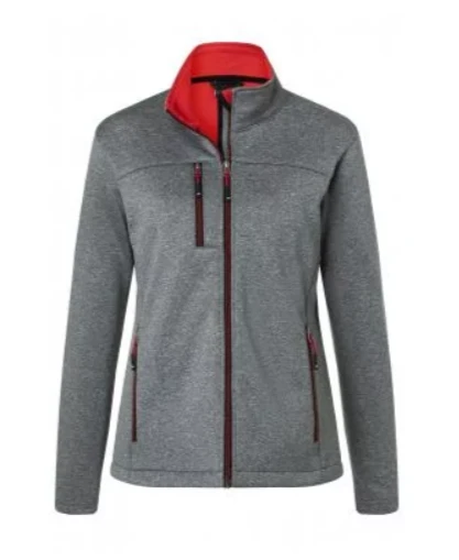 Příjemně měkký dvouvrstvý softshell, kontrastní podšívka z fleecu, zip po celé délce s ochranou brady, stojací límec, 2 boční kapsy na zip, náprsní kapsa na zip, lehce vypasovaný střih.
