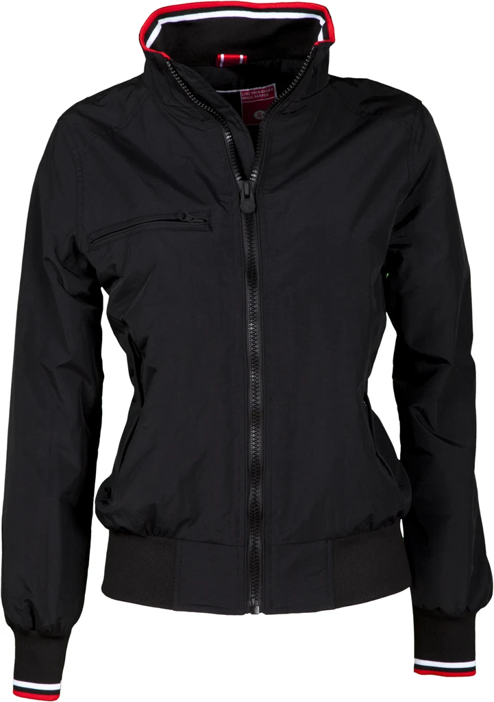 Po celé délce 8 mm široký plastový zip, kovový jezdec, elastický žebrovaný límec, manžety a spodním lem, elastické manžety a spodní lem, proužky na límci a manžetách, 2 vnější kapsy na skrytý zip, bez vycpávky, síťovaná podšívka, vnitřní kapsa na mobilní telefon s vývodem na sluchátka