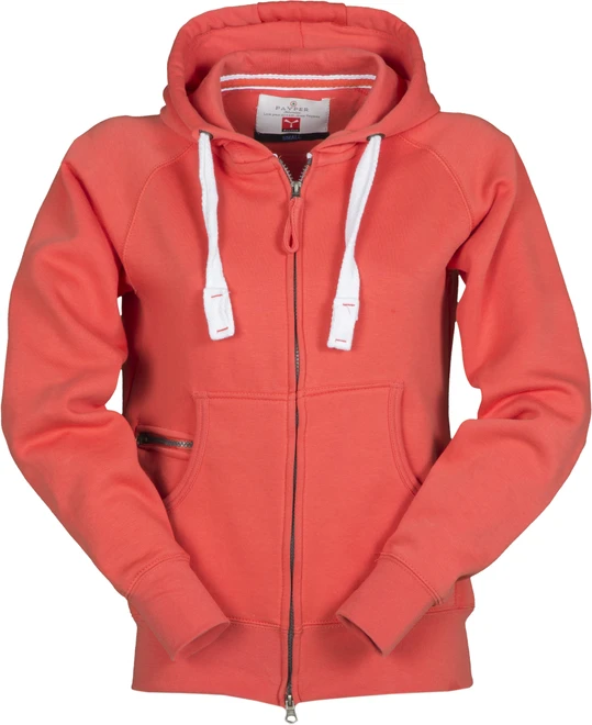 Vypasovaný střih, plastový zip po celé délce, kovový dvojcestný jezdec, kapuce s dvojitým prošitím švů, bílá stahovací šňůrka, kovová očka na kapuci, raglánové rukávy, klokaní kapsa, malá kapsa na zip, elastické manžety a spodní lem, vyztužené švy