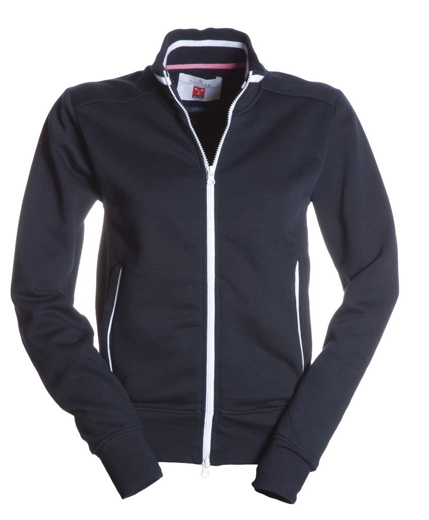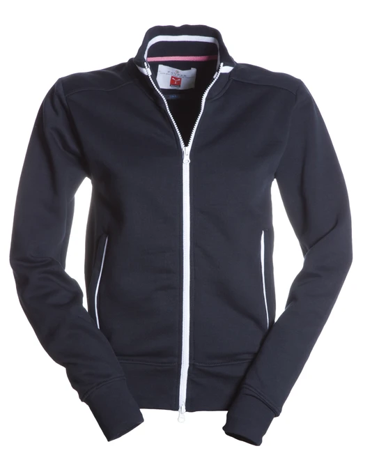 Plastový zip po celé délce, dvojcestný kovový jezdec, žebrovaný límec s kontrastním pruhem, 2 boční kapsy s kontrastním pruhem, vypasovaný střih, elastické manžety a spodní lem, vyztužené švy