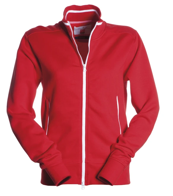 Plastový zip po celé délce, dvojcestný kovový jezdec, žebrovaný límec s kontrastním pruhem, 2 boční kapsy s kontrastním pruhem, vypasovaný střih, elastické manžety a spodní lem, vyztužené švy