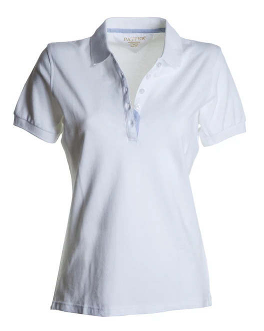 Krátký rukáv, zapínání na 5 knoflíčků, perleťové knoflíčky ve stejné barvě jako polokošile, žebrovaný límeček a manžety, vnitřní výztužná páska za krkem, boční rozparky, vnitřek límce v odstínu Light blue