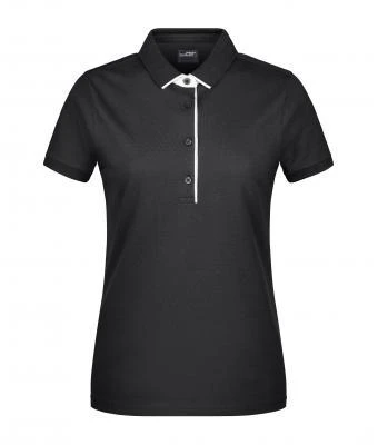 Kvalitní piké, pletený límec a manžety rukávů, kontrastní pruhy na límci, léga v kontrastní barvě, knoflíčky tón v tónu, boční rozparky, vypasovaný střih, zapínání na 4 knoflíčky.