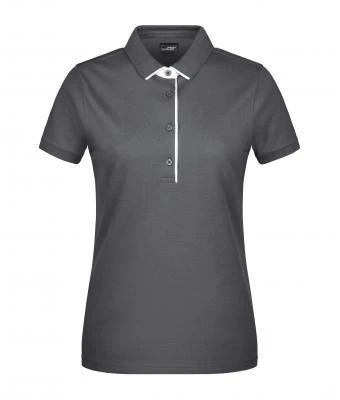 Kvalitní piké, pletený límec a manžety rukávů, kontrastní pruhy na límci, léga v kontrastní barvě, knoflíčky tón v tónu, boční rozparky, vypasovaný střih, zapínání na 4 knoflíčky.