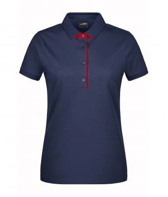 Kvalitní piké, pletený límec a manžety rukávů, kontrastní pruhy na límci, léga v kontrastní barvě, knoflíčky tón v tónu, boční rozparky, vypasovaný střih, zapínání na 4 knoflíčky.