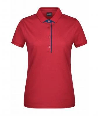 Kvalitní piké, pletený límec a manžety rukávů, kontrastní pruhy na límci, léga v kontrastní barvě, knoflíčky tón v tónu, boční rozparky, vypasovaný střih, zapínání na 4 knoflíčky.