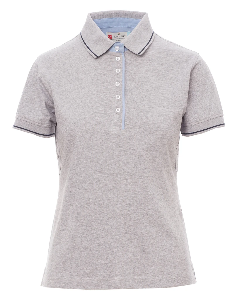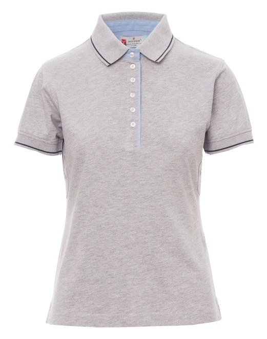 Krátký rukáv, vypasovaný střih, zapínání na 6 bílých knoflíků, vnitřní límeček, rozparky a léga v barvě Oxford blue, žebrování na límci a na manžetách, kontrastní proužek na límci a manžetách, pod podpažím 2 větrací otvory, boční rozparky s vyztuženými švy, elastické švy, výztužná páska za krkem