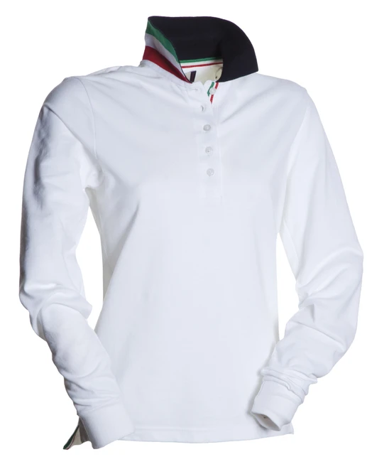 Dlouhý rukáv, vypasovaný střih, léga s 5 ladícími knoflíky, na rubové straně límce motiv vlajky, na pravém rukávu proužky ve stejné barvě jako vlajka, žebrování na límci a manžetách, výztužná páska za krkem v barvě vlajky, vyztužené boční švy