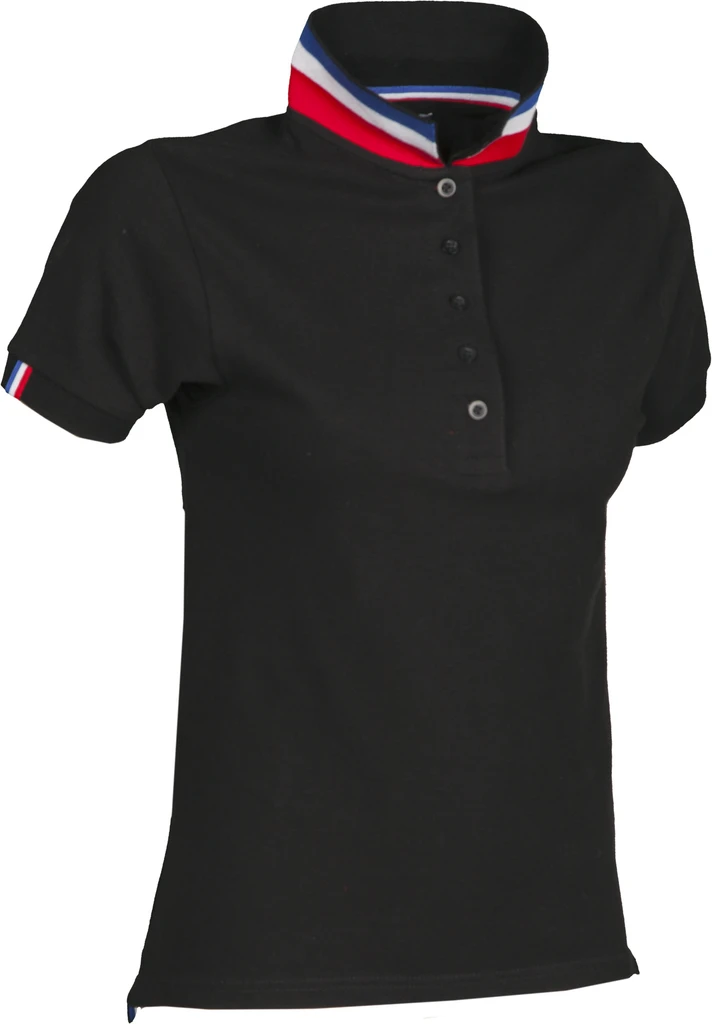 Krátký rukáv, vypasovaný střih, léga s 5 ladícími knoflíky, na rubové straně límce motiv vlajky, na pravém rukávu proužky ve stejné barvě jako vlajka, žebrování na límci a manžetách, výztužná páska za krkem v barvě vlajky, vyztužené boční švy