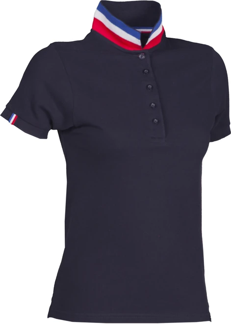 Krátký rukáv, vypasovaný střih, léga s 5 ladícími knoflíky, na rubové straně límce motiv vlajky, na pravém rukávu proužky ve stejné barvě jako vlajka, žebrování na límci a manžetách, výztužná páska za krkem v barvě vlajky, vyztužené boční švy