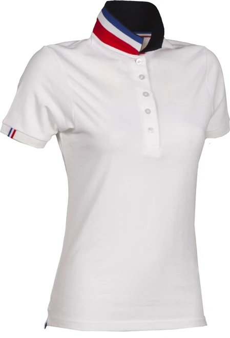 Krátký rukáv, vypasovaný střih, léga s 5 ladícími knoflíky, na rubové straně límce motiv vlajky, na pravém rukávu proužky ve stejné barvě jako vlajka, žebrování na límci a manžetách, výztužná páska za krkem v barvě vlajky, vyztužené boční švy
