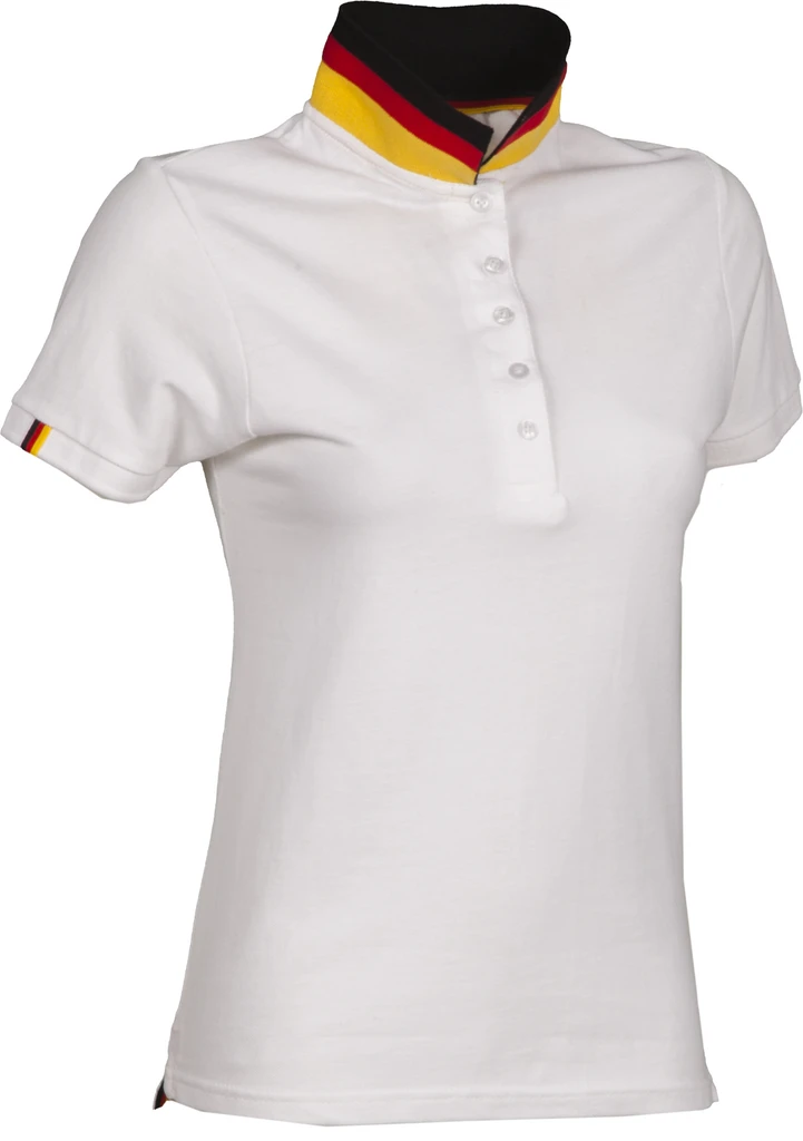 Krátký rukáv, vypasovaný střih, léga s 5 ladícími knoflíky, na rubové straně límce motiv vlajky, na pravém rukávu proužky ve stejné barvě jako vlajka, žebrování na límci a manžetách, výztužná páska za krkem v barvě vlajky, vyztužené boční švy
