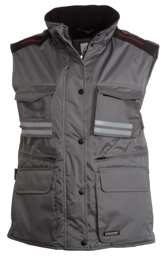 8 mm široký plastový zip po celé délce, kovový jezdec, klopa s cvoky po celé délce, odepínací kapuce, nastavitelné manžety, reflexní proužky vpředu i vzadu, boční ventilační otvory na zip, 9 vnějších kapes - 2 se speciálním zavíracím systémem, 2 na zip a s vyztuženým vnitřkem, 1 kapsa průhledná, vatová vycpávka, podšívka na límci z microfleecu