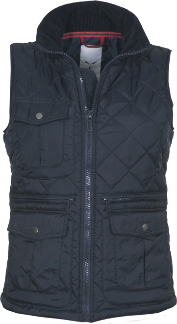 Prošívaná vesta, 8 mm široký plastový zip po celé délce, kovový jezdec, boční průduchy na knoflík, 5 vnějších kapes - 2 se speciálním zavíracím systémem, vnitřní kapsa, vatová vycpávka, podšívka na límci z žebrovaného manšestru