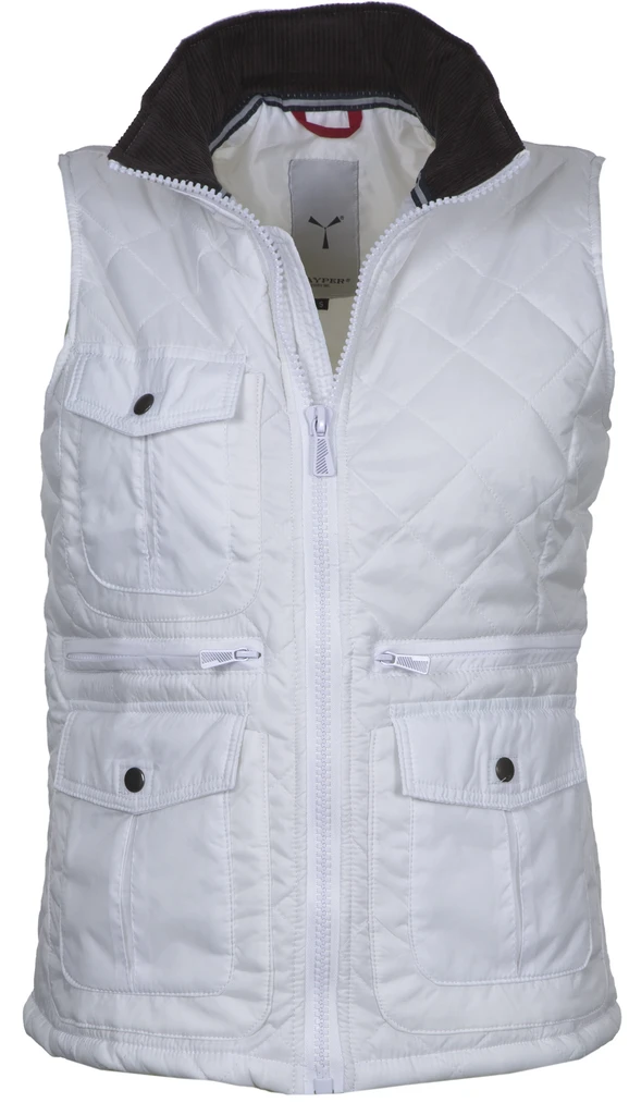 Prošívaná vesta, 8 mm široký plastový zip po celé délce, kovový jezdec, boční průduchy na knoflík, 5 vnějších kapes - 2 se speciálním zavíracím systémem, vnitřní kapsa, vatová vycpávka, podšívka na límci z žebrovaného manšestru