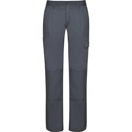 Vyrobené z vysoce odolné látky, upravitelný obvod pasu pomocí elastické části na zadní straně, 2 přední kapsy, zadní funkční kapsa krytá klopou se zapínáním na suchý zip, 1 postranní kapsa krytá klopou se zapínáním na suchý zip, úzká pravá boční kapsa bez klopy, zesílená dvojitá zadní část, dvojitý materiál na kolenou, Duo koncept (varianta dostupná i pro muže).