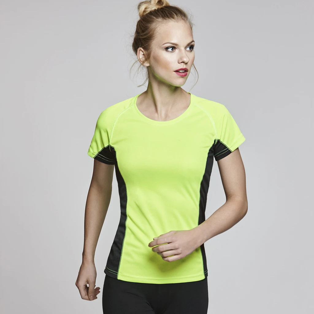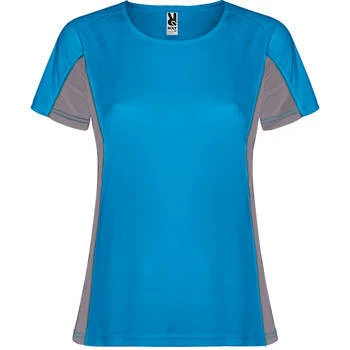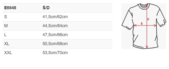 Krátké raglánové rukávy, kulatý výstřih, zpevněné švy na průkrčníku, kombinace dvou polyesterových tkanin, mikroperforovaný materiál na bocích a průramcích, funkční materiál, pohodlné a snadno přizpůsobivé, prodyšný rychleschnoucí materiál, odstranitelná cedulka, vhodné pro potisk sublimací.
