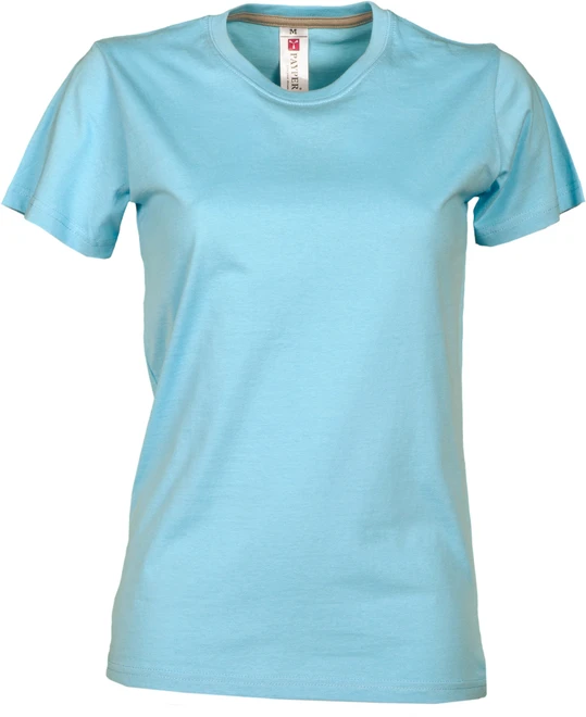 Krátký rukáv, kulatý výstřih, vypasovaný střih, 15 mm široký lem okolo výstřihu s příměsí spandexu, kontrastní vnitřní výztužná páska za krkem, elastické švy, boční švy