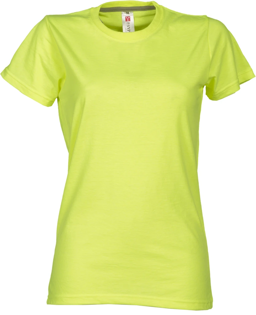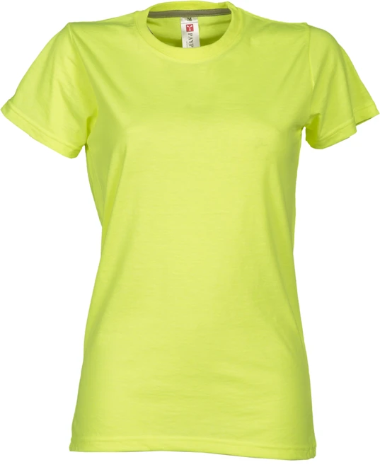 Krátký rukáv, kulatý výstřih, vypasovaný střih, 15 mm široký lem okolo výstřihu s příměsí spandexu, kontrastní vnitřní výztužná páska za krkem, trubicovitý střih
