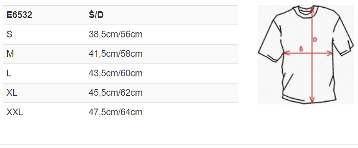 Vypasovaný model s kulatým výstřihem prostřiženým do "V", krátké rukávky, boční švy, dostupné ve velikosti XXXL pouze barvy White a Black, vysoce kvalitní zpracování, materiál se speciální úpravou, měkký a příjemný na dotek, odnímatelná cedulka, úprava Roly.