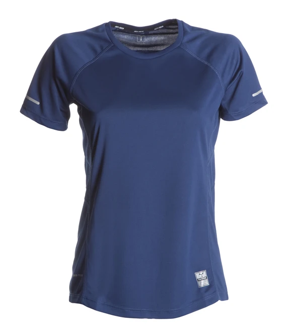 Funkční materiál, vypasovaný střih, raglánové rukávy, dvojité boční švy, delší zaoblená zadní část, reflexní značky na rukávech a zadní části krku, kontrastní výztužná páska za krkem