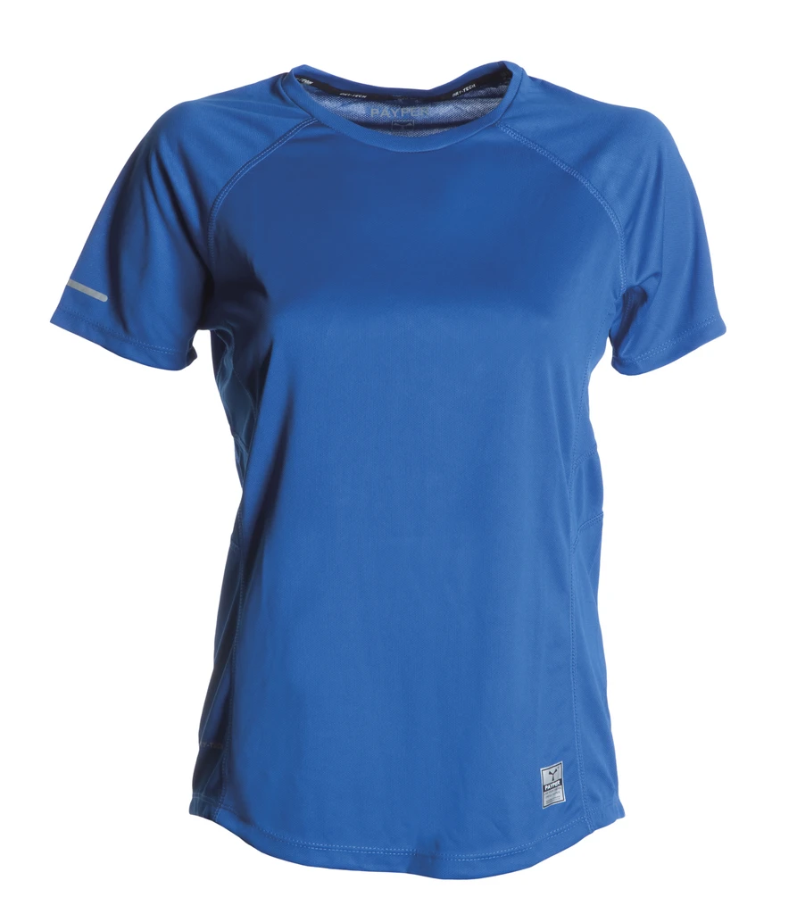 Funkční materiál, vypasovaný střih, raglánové rukávy, dvojité boční švy, delší zaoblená zadní část, reflexní značky na rukávech a zadní části krku, kontrastní výztužná páska za krkem