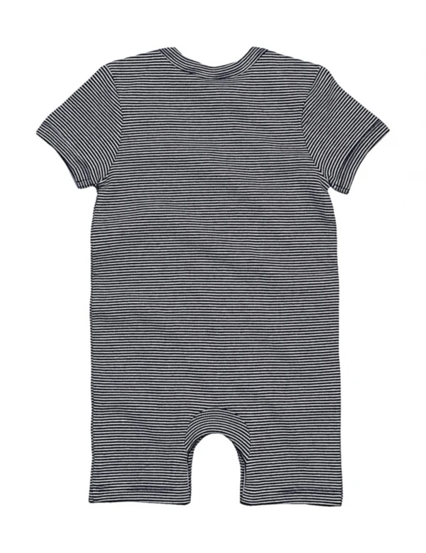 Jemná a pružná látka, pruhovaný vzor, pruhovaný výstřih ve tvaru "obálky", cvočky v rozkroku, kalhotkový střih, lehce odstranitelný štítek pro změnu značky.