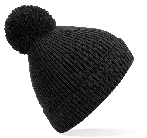 Engineered Knit Ribbed Pom Pom Beanie