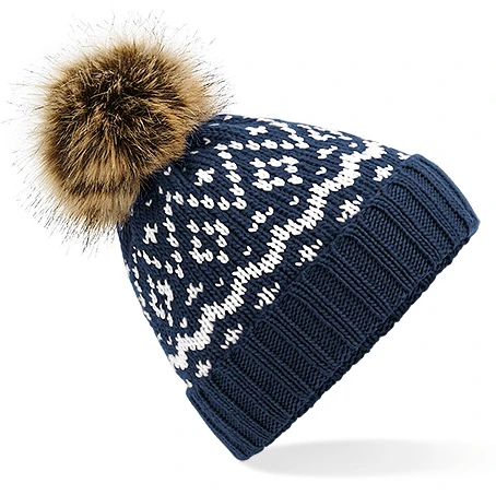 Fair Isle Faux Fur Pop Pom Beanie