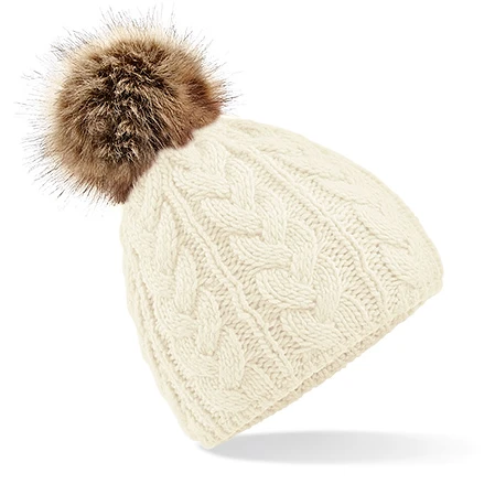 Faux Fur Pop Pom Cable Beanie