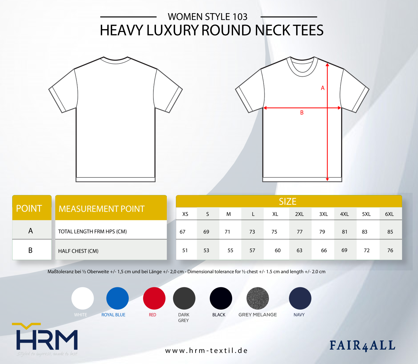 Trička HRM Luxury jsou vyrobena z vysoce kvalitní, česané, kroužkové a 100% certifikované organické bavlny. Pohodlí našich luxusních triček se vyznačuje zejména měkkými a poddajnými materiály a vynikajícím módním střihem. Trička Luxury jsou bez etiket a lze je prát do 60°C. Jsou k dispozici v 8 různých barvách s výstřihem do V nebo kulatým výstřihem a díky své povrchové struktuře jsou vhodné zejména pro úpravu textilu.