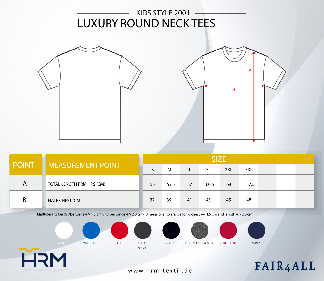 LUXUSNÍ DĚTSKÁ TRIČKA HRM S KRUHÝM VÝKRKEM jsou vyrobena z vysoce kvalitní, česané, prstencové a 100% organické bavlny s certifikací GOTS. Pohodlí při nošení se vyznačuje především vynikajícím zpracováním, měkkými, poddajnými materiály a moderním klasickým střihem, který je vhodný pro děti. Naše dětská trička byla navržena speciálně pro děti a již byla úspěšně testována na odolnost a udržitelnost. Stejně jako „velké“ jsou bez etiket, stálobarevné a lze je prát do 60°C.