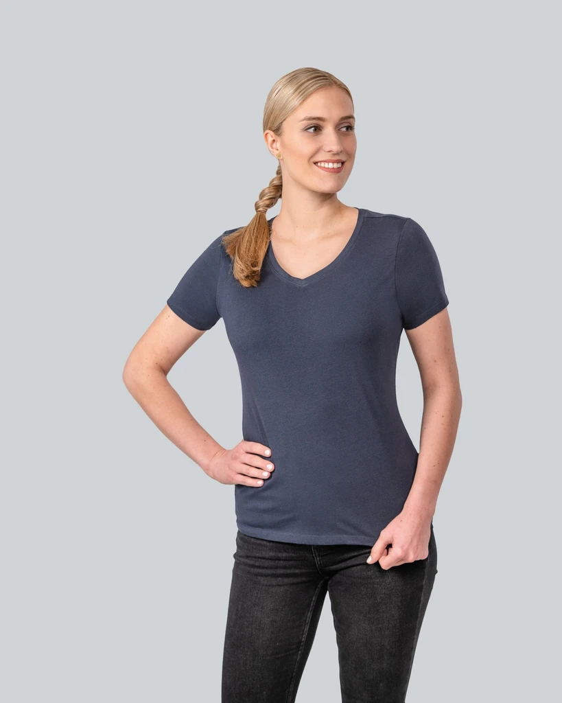 Naše dámská trička HRM s výstřihem do V jsou extrémně odolná, protože jsou vyrobena z vysoce kvalitní, česané a prstencově předené, 100% organické bavlny s certifikací GOTS. Pohodlí našich triček se vyznačuje měkkými a poddajnými materiály a vynikajícím módním střihem. Dvojitě prošívaný nákrčník od ramene k rameni zlepšuje ergonomický pocit a dodává tričku extra stabilitu. Naše trička jsou, s výjimkou tkaného vlajkového štítku Fair4All v levém bočním švu, bez štítků a jsou stálobarevná a lze je prát do 60° C. Naše trička mají velmi dlouhou životnost díky protisrážlivosti a -pillingová léčba. Díky jemné povrchové struktuře jsou zvláště vhodné pro konečnou úpravu textilií.