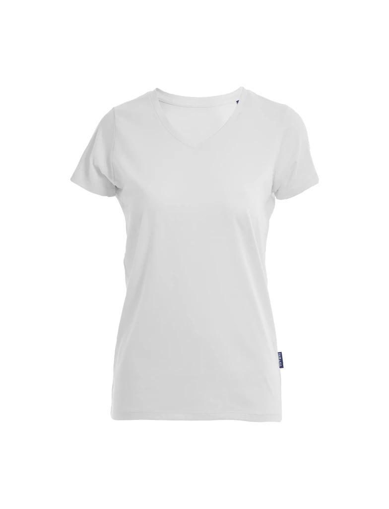 Naše dámská trička HRM s výstřihem do V jsou extrémně odolná, protože jsou vyrobena z vysoce kvalitní, česané a prstencově předené, 100% organické bavlny s certifikací GOTS. Pohodlí našich triček se vyznačuje měkkými a poddajnými materiály a vynikajícím módním střihem. Dvojitě prošívaný nákrčník od ramene k rameni zlepšuje ergonomický pocit a dodává tričku extra stabilitu. Naše trička jsou, s výjimkou tkaného vlajkového štítku Fair4All v levém bočním švu, bez štítků a jsou stálobarevná a lze je prát do 60° C. Naše trička mají velmi dlouhou životnost díky protisrážlivosti a -pillingová léčba. Díky jemné povrchové struktuře jsou zvláště vhodné pro konečnou úpravu textilií.