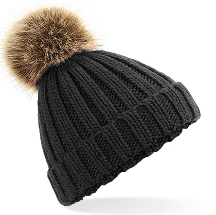 Junior Faux Fur Pom Pom Chunky Beanie