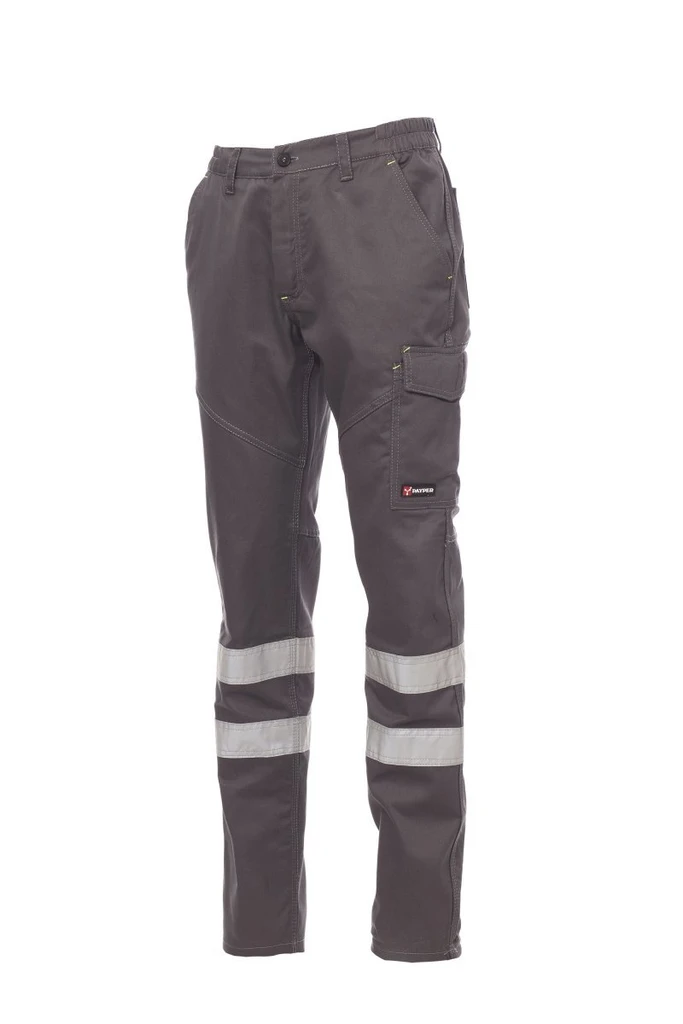 Pánské unisex kalhoty vhodné pro zimní období. Reflexní pruhy kat.1, elastické pásky na bocích a poutka v pase, zapínání na plastový zip a na kovový knoflík, dvě přední kapsy klasického střihu, jedna postranní kapsa LOCK SYSTEM, jedna kapsa na svinovací metr, dvě postranní kapsy, z nichž jedna otevřená a druhá s klopou na suchý zip, kontrastní vsadky a prošití, reflexní pruhy na zadní kapse, dvojité prošití švů