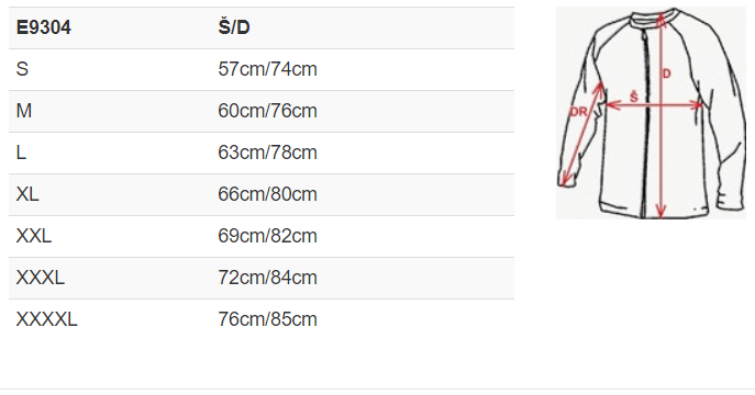 | Velikost | S, M, L, XL, 2XL, 3XL |