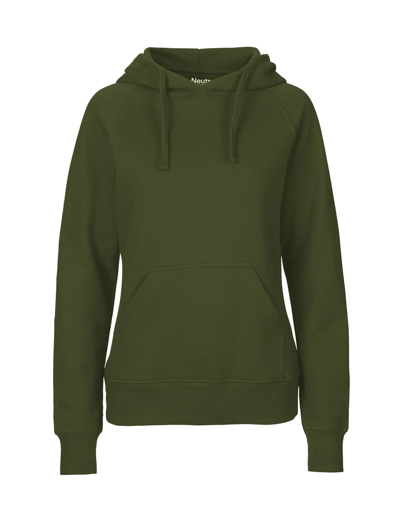 Materiál: 100% bio bavlna "Fairtrade Cotton", fleece, vnitřní strana počesaná; Gramáž: 300 g/m²; Dámský střih, styl "casual". Zpevňující páska za krkem, klokaní kapsa. Kapuce s dvojitým lemováním a šňůrkami na stažení. Žebrované manžety na rukávech a v pase. Kvalitní prstencová bavlna; Certifikáty: OEKO-TEX® STANDARD 100, 100% CERTIFIED ORGANIC COTTON, FAIR WEAR, EU ECOLABEL, SA8000, NEUTRAL® RESPONSIBILITY
