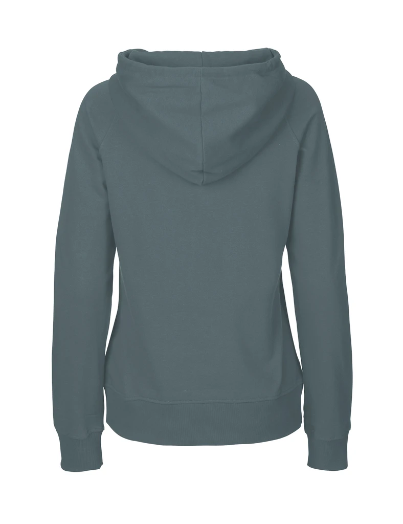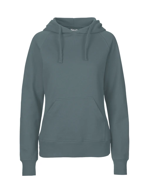 Materiál: 100% bio bavlna "Fairtrade Cotton", fleece, vnitřní strana počesaná; Gramáž: 300 g/m²; Dámský střih, styl "casual". Zpevňující páska za krkem, klokaní kapsa. Kapuce s dvojitým lemováním a šňůrkami na stažení. Žebrované manžety na rukávech a v pase. Kvalitní prstencová bavlna; Certifikáty: OEKO-TEX® STANDARD 100, 100% CERTIFIED ORGANIC COTTON, FAIR WEAR, EU ECOLABEL, SA8000, NEUTRAL® RESPONSIBILITY