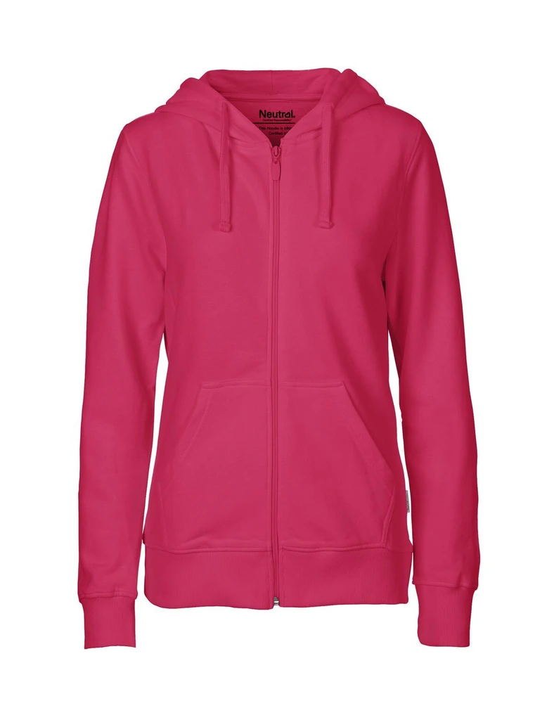 Materiál: 100% bio bavlna "Fairtrade Cotton", fleece, vnitřní strana počesaná; Gramáž: 300 g/m²; Dámský střih, styl "casual", dvojitá kapuce. Zapínání vpředu na dlouhý zip YKK. Zpevňující páska za krkem, klokaní kapsa. Kapuce s dvojitým lemováním a plochými šňůrkami na stažení. Žebrované manžety na rukávech a v pase. Ušito z kvalitní prstencové bavlny; Certifikáty: OEKO-TEX® STANDARD 100, 100% CERTIFIED ORGANIC COTTON, FAIR WEAR, EU ECOLABEL, SA8000, NEUTRAL® RESPONSIBILITY