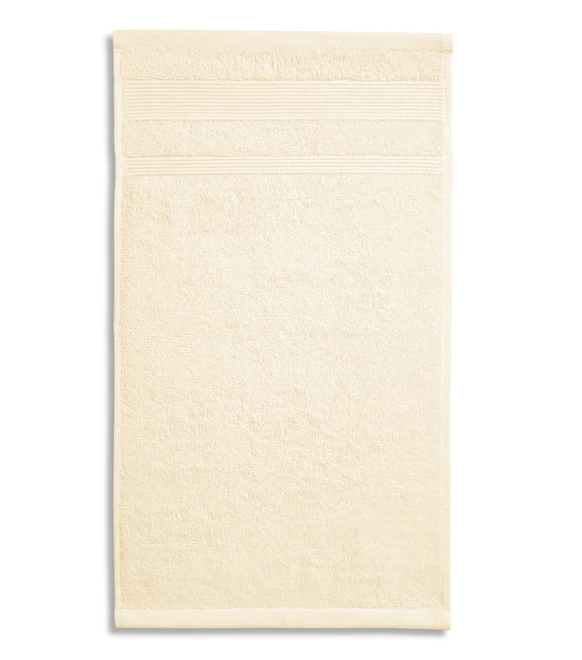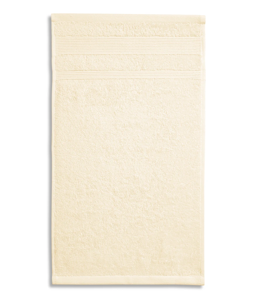 Certifikovaná organická bavlna, tkané froté vyšší gramáže, dekorativní dvojitá bordura, měkký a vysoce savý materiál, etiketa použitelná jako závěsné poutko, dárkový předmět vhodný pro výšivku, rozměry: 30 x 50 cm, bordura: 3,5 cm, 1,5 cm