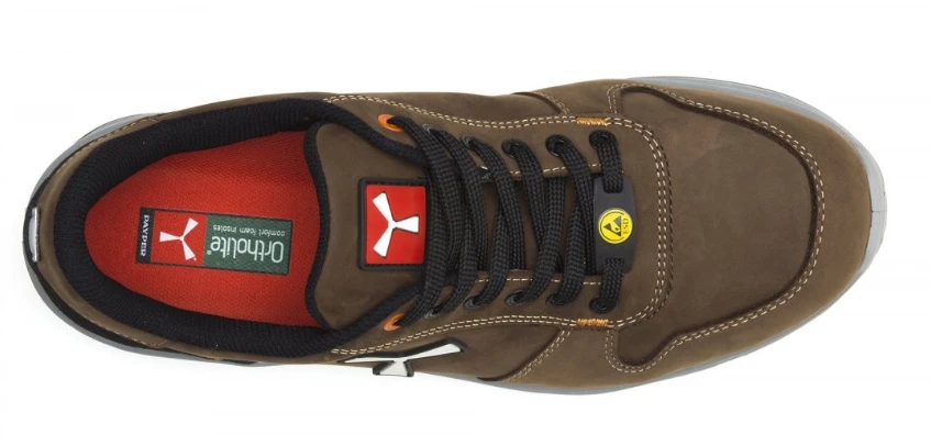 Nízká bezpečnostní pánská obuv, svršek z voděodolné a prodyšné kůže, vnitřní prodyšná podšívka (po celém vnitřním povrchu) odolná proti oděru, 6+6 nekovových oček, chránič podpatku z kůže pampas vybavený reflexní vložkou, hliníková tužinka ve špičce litá pod tlakem, vyjímatelná ortopedická vložka Ortholite X40 016 ESD, certifikovaná stélka z textilní fólie proti propíchnutí, proti torzní výztuž shank, výztuž pod špičkou ve tvaru koňské podkovy, mezipodešev z ultralehkého polyuretanu ESD, tlumič nárazů MASTER BALANCE z polyetheru PU o vysoké houževnatosti a vyvážené hustotě, podrážka XTRAIL GRIP z TPU ESD s chráničem