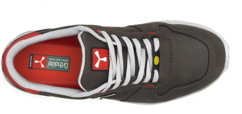 Nízká bezpečnostní pánská obuv, svršek z voděodolné a prodyšné kůže, vnitřní prodyšná podšívka (po celém vnitřním povrchu) odolná proti oděru, 6+6 nekovových oček, chránič podpatku z kůže pampas vybavený reflexní vložkou, hliníková tužinka ve špičce litá pod tlakem, vyjímatelná ortopedická vložka Ortholite X40 016 ESD, certifikovaná stélka z textilní fólie proti propíchnutí, proti torzní výztuž shank, výztuž pod špičkou ve tvaru koňské podkovy, mezipodešev z ultralehkého polyuretanu ESD, tlumič nárazů MASTER BALANCE z polyetheru PU o vysoké houževnatosti a vyvážené hustotě, podrážka XTRAIL GRIP z TPU ESD s chráničem