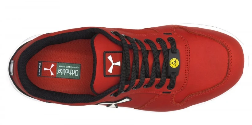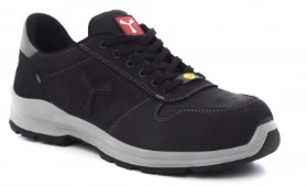 Nízká bezpečnostní pánská obuv, svršek z voděodolné a prodyšné kůže, vnitřní prodyšná podšívka (po celém vnitřním povrchu) odolná proti oděru, 6+6 nekovových oček, chránič podpatku z kůže pampas vybavený reflexní vložkou, hliníková tužinka ve špičce litá pod tlakem, vyjímatelná ortopedická vložka Ortholite X40 016 ESD, certifikovaná stélka z textilní fólie proti propíchnutí, proti torzní výztuž shank, výztuž pod špičkou ve tvaru koňské podkovy, mezipodešev z ultralehkého polyuretanu ESD, tlumič nárazů MASTER BALANCE z polyetheru PU o vysoké houževnatosti a vyvážené hustotě, podrážka XTRAIL GRIP z TPU ESD s chráničem