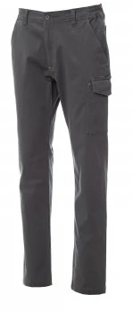 Kalhoty s poutky na opasek a elastickým pasem, zapínáním na zip a knoflíky. Trojitě prošité vyztužené švy na rozkroku a vnitřní nohavici, dvojitě prošité boční švy, dvě klasické přední kapsy, kapsa na mince, pravá boční kapsa na metr, levá boční kapsa se zapínáním na klopu LOCK SYSTEM, dvě zadní kapsy, jedna s klopou a suchým zipem
